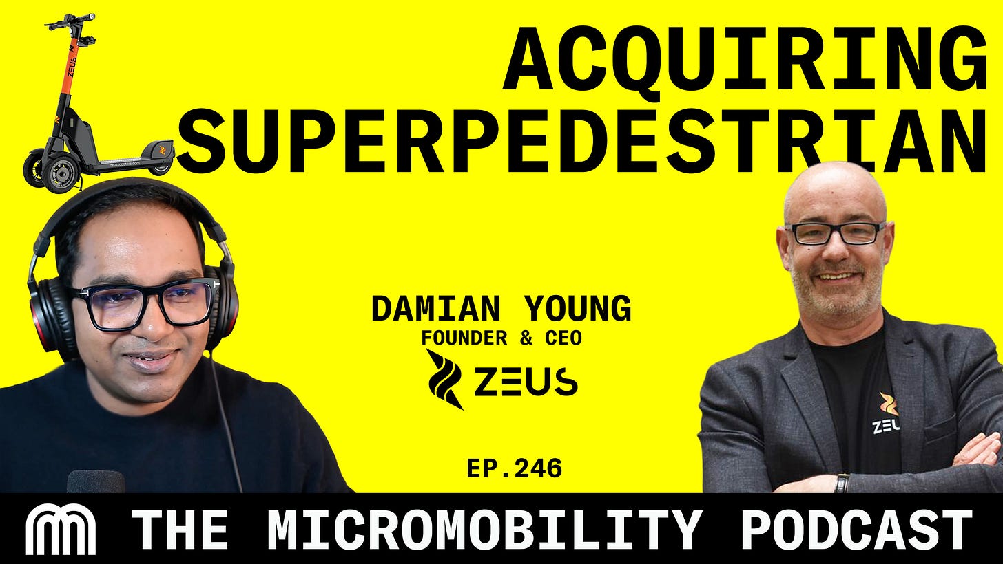 In this episode of the Micromobility Podcast, Damian Young, Founder and CEO of Zeus Scooters, joins the show to discuss the company’s journey from launching in smaller European cities to acquiring the assets of Superpedestrian.